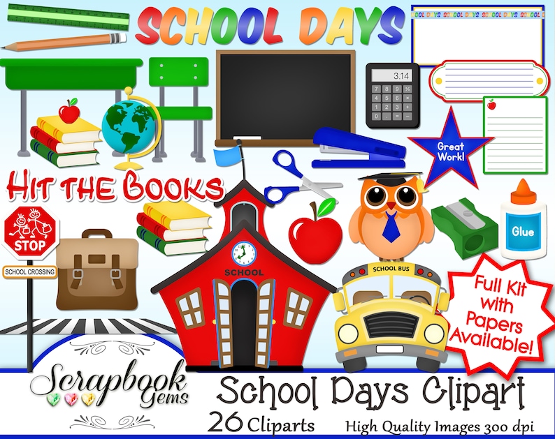 SCHOOL DAYS Clipart 26 Png Clipart Files Instant Download Etsy